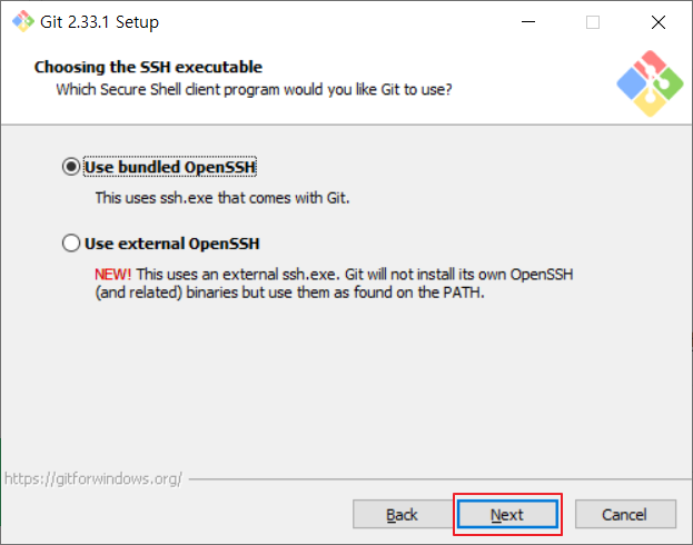 📌✅Use bundled OpenSSH : Git에서 기본으로 제공되는 OpenSSH를 사용합니다.