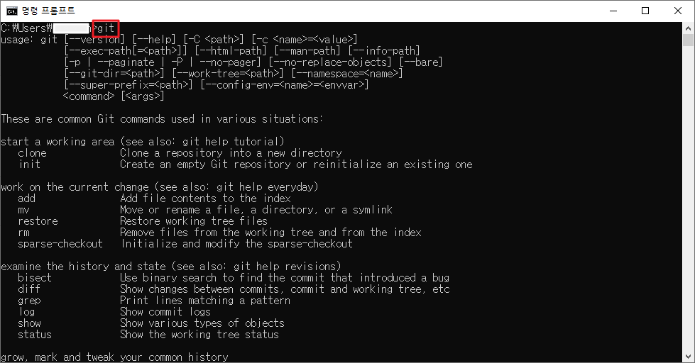 CMD -> git 입력