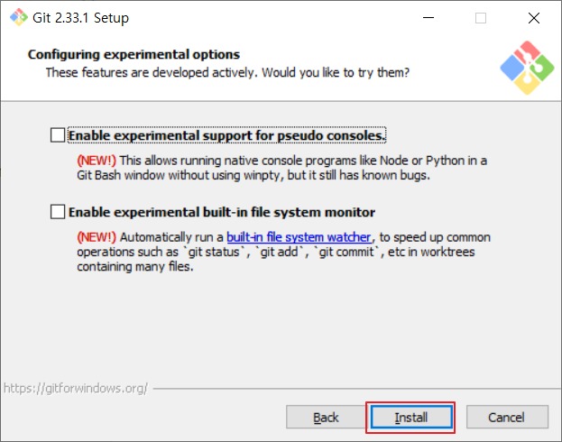 📌Enable experimental support for pseudo consoles : winpty를 사용하지 않고 Git Bash에서 Node나 Python과 같은 콘솔을 실행할 수 있게 합니다. 그러나 몇 가지 버그가 있습니다.