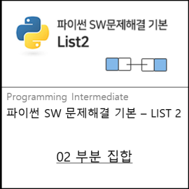 | [SWEA]파이썬 SW문제해결 기본 - LIST 2 : 부분 집합 (1/2) (0) | 2021.11.22 |